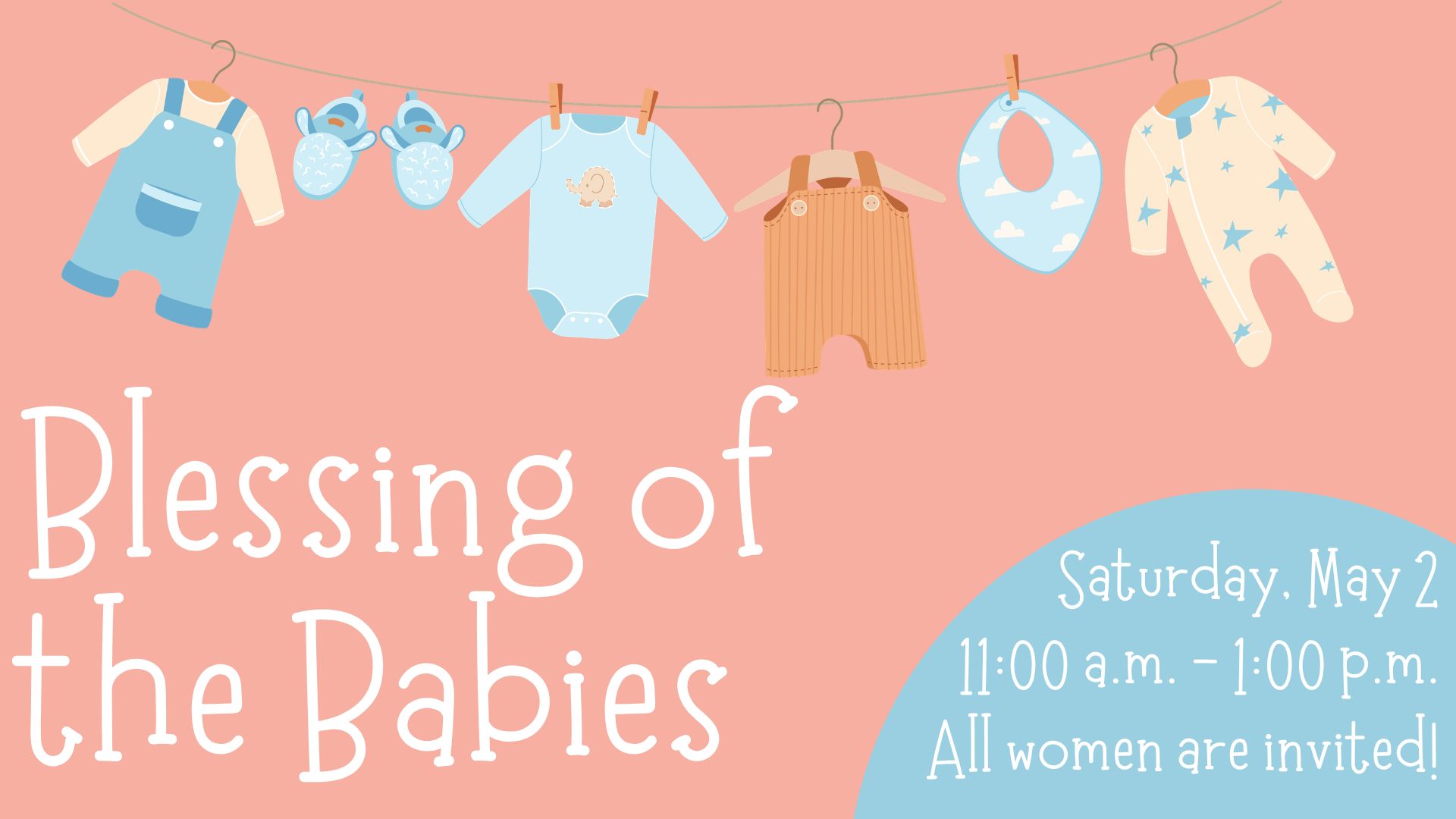 All women are invited to a "Blessing of the Babies" event on Saturday, May 2 from 11:00 a.m. - 1:00 p.m. We have 5 moms welcoming 7 babies and want to bless their families. This is not a baby shower! The main goal is to pray and support expecting families with meal trains. We will also be collecting blessing baskets for the parents. The baskets could include gift cards, healthy snacks, or any other small things to support the families. The gifts for the parent baskets will be evenly distributed, so there's no pressure to bring something for every [...]